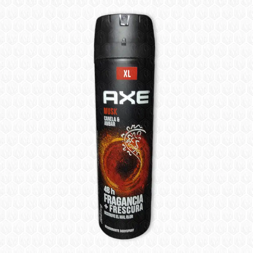 El Axe Musk Canela & Ámbar es un desodorante corporal de 230 ml con una fragancia masculina atemporal que fusiona la calidez de la Canela y la riqueza del Ámbar. Ofrece hasta 48 horas de protección sin aluminio y es una elección consciente con envase reciclable.
